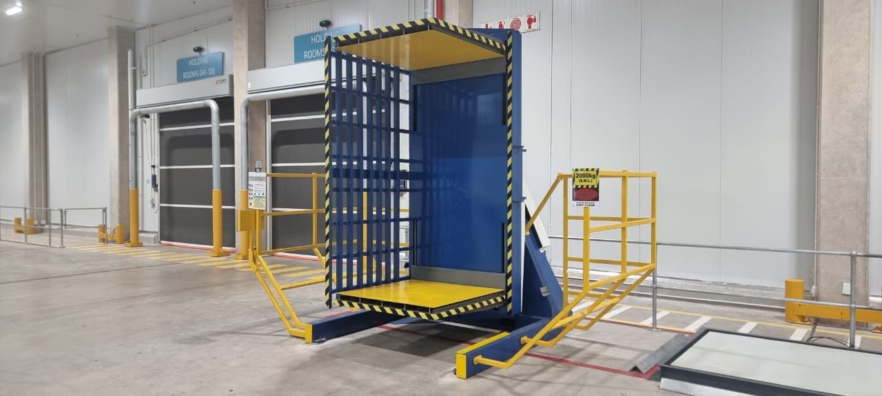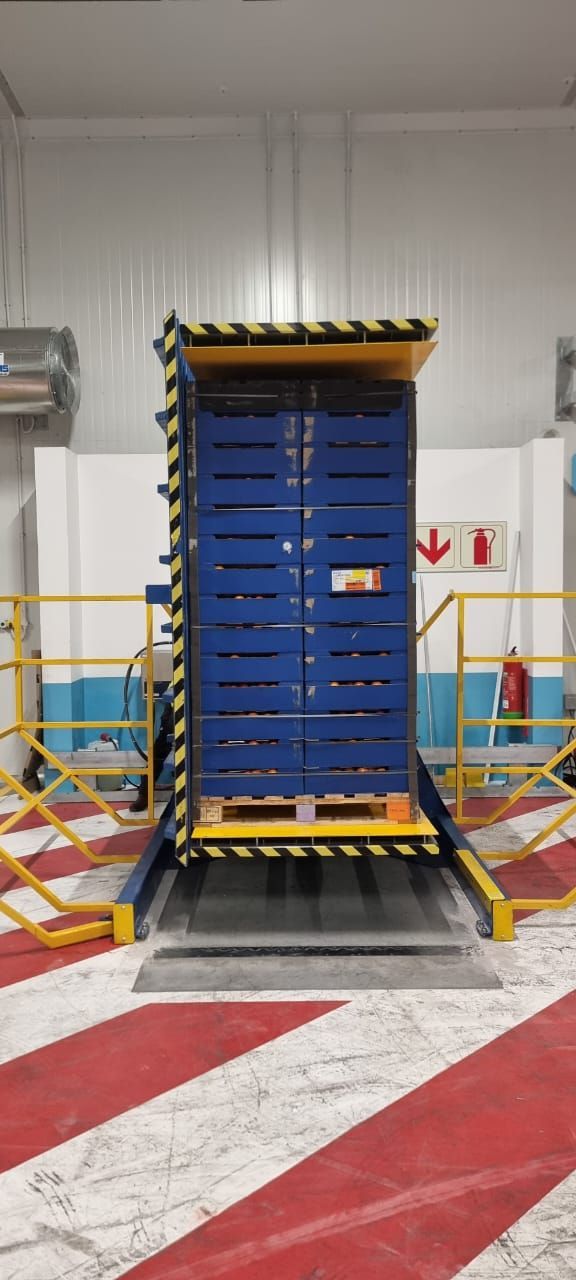 A Dual Pallet Inverter is a mechanical device that securely clamps and rotates two pallets simultaneously, allowing for the inversion or transfer of goods between pallets. The floor-mounted design ensures stability and ease of access, making it ideal for high-volume operations.